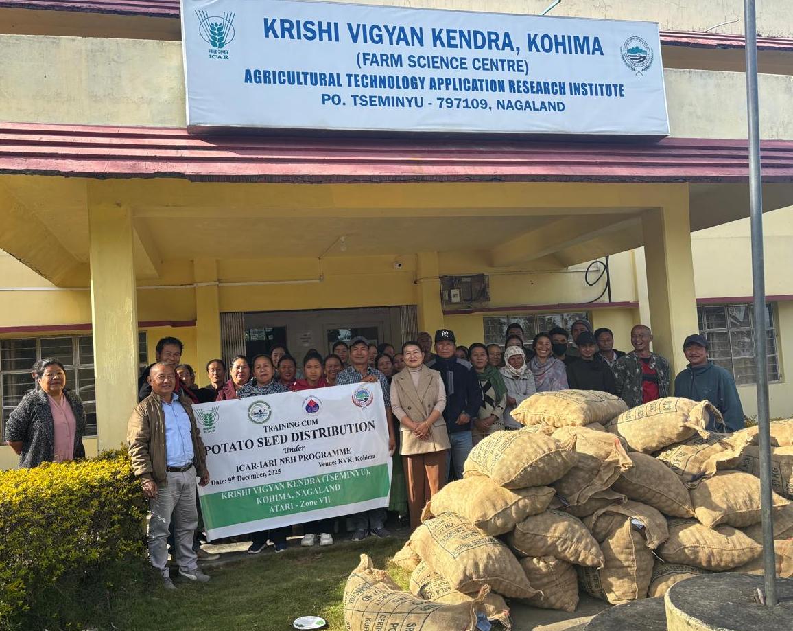 A Training-cum Potato Tuber Seed Distribution Programme was successfully conducted on 9th December 2025 at KVK, Kohima Campus to support FPOs, Farmers Club, farm women and Self-Help Groups (SHGs) from Tseminyu and Kohima districts. A total of 5,000 kilograms of certified Potato Tuber Seeds (variety: Kufri Jyoti) were distributed during the programme.